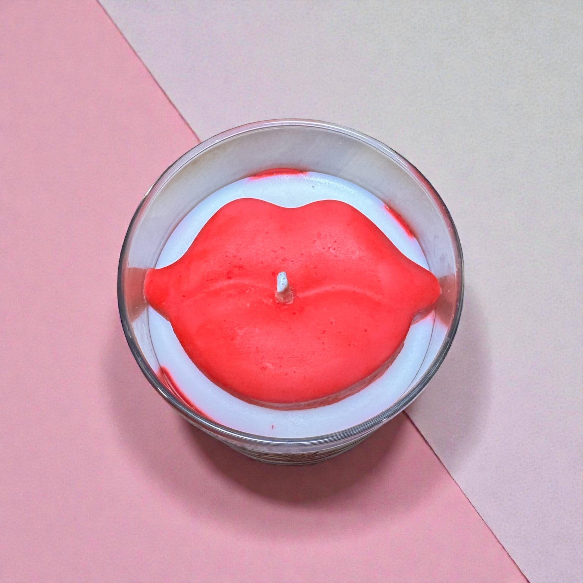 The design is just as striking. A crisp white base is lined with waved red wax inside the jar for a glowing effect, topped with a set of bold red lips — because confidence is always in style. 💋❤️